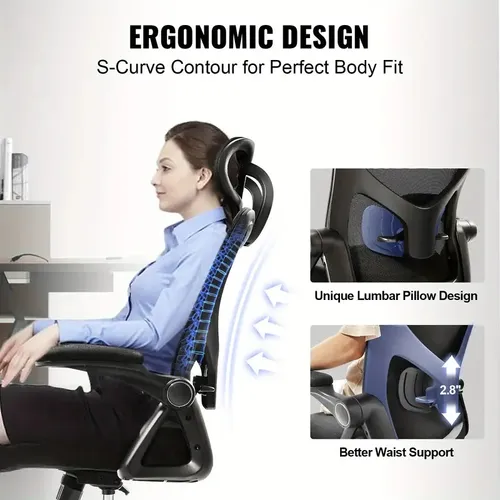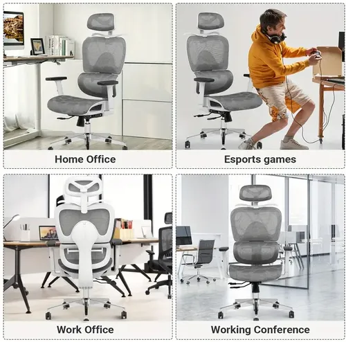 Mesh high back office chair computer chair adjustable lumbar support headrest cushion, executive chair with tilt function recliner