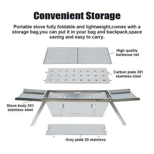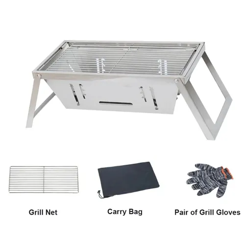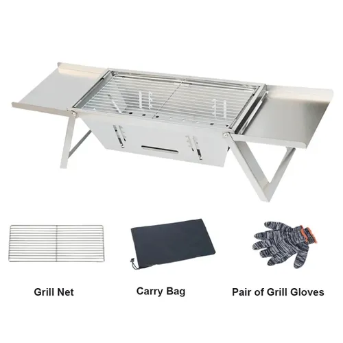 【Premium Material】Charcoal plate, stove body, ash catching plate are made of 304 stainless steel,sturdy and durable for long lasting use.Charcoal grill comes with a pair of gloves.